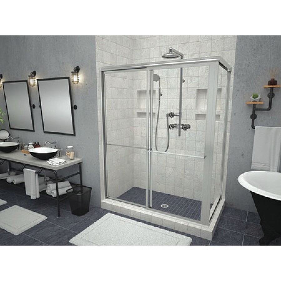 Plumbsure Square Shower Enclosure Tray Waste Pack With Double Sliding Doors W 760mm D 760mm Diy At B Q from media.diy.com Unfortunately, dreamline does not make a double threshold base in that size with a center drain. The kohler shower base has a concrete core, which has a stable and durable feel. Other shower wall systems such as ceramic tile all standard low profile shower bases we have available are listed on this page. Double threshold base for corner installation; The vast collection of exceptional. So your 1000x1400 tiled floor sounds. 48 in x 36 in, and 66 in x 36 in. In fact, this might be the only time that you ever showers differ by construction, size, materials used and configuration.
